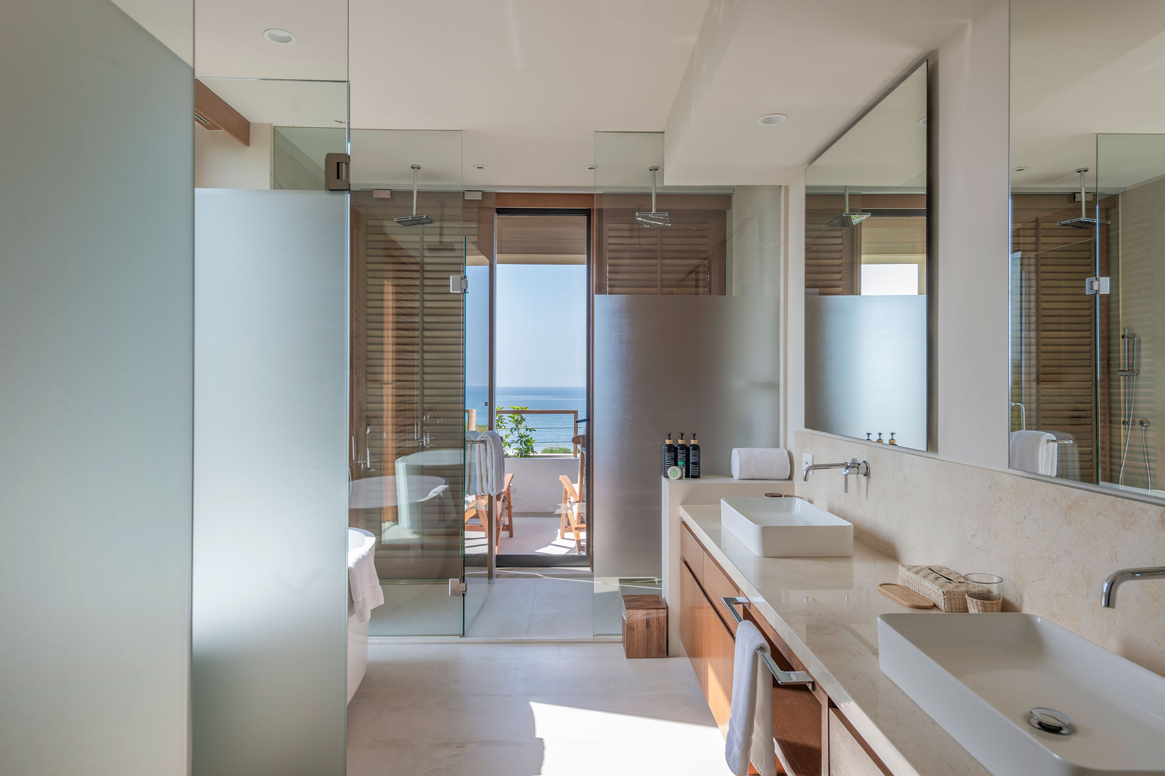 Elegant wooden pergolas shade beautifully designed outdoor spaces, ideal for stylish entertaining or peaceful relaxation. Inside, the open-concept layout blends seamlessly with the lush natural surroundings, offering floor-to-ceiling windows, a modern kitchen, and spa-like bathrooms.