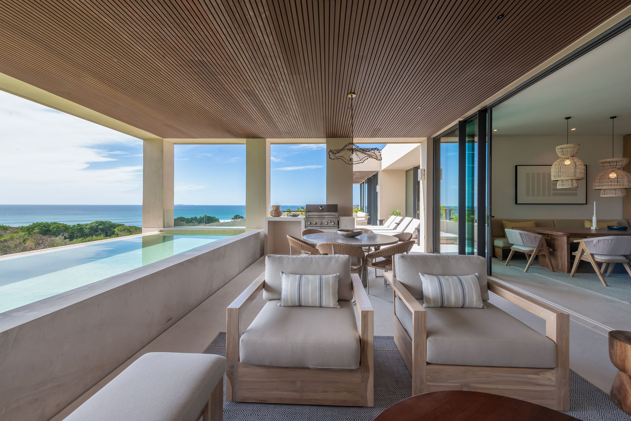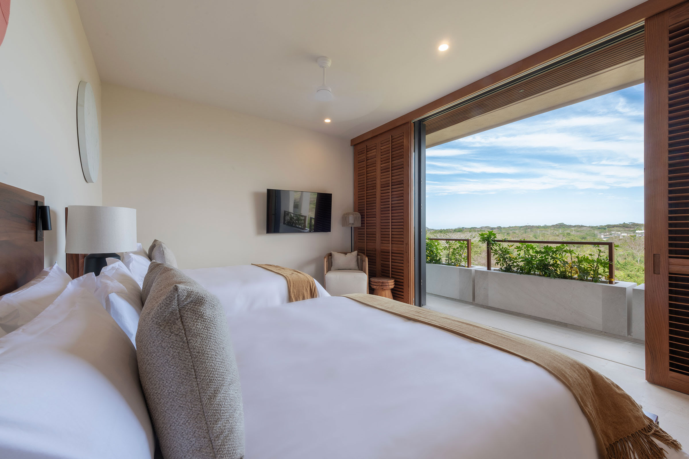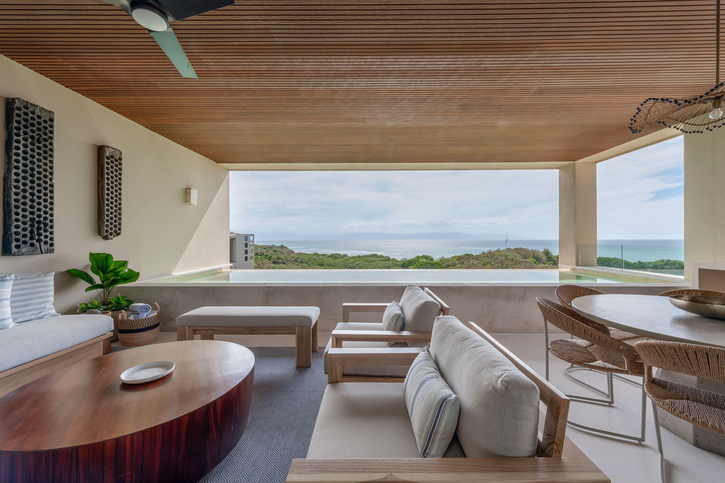 Discover unparalleled coastal elegance at the Rooftop Oasis penthouse within Surf Residences, Punta Mita. This expansive 4-bedroom, 4.5-bathroom retreat spans two levels, offering panoramic views of the Marietas Islands and Bahia de Banderas. Designed to accommodate up to 16 guests, it features a private rooftop sanctuary with an infinity-edge pool, a plunge pool, and shaded lounging areas beneath elegant wooden pergolas—ideal for both relaxation and entertaining.