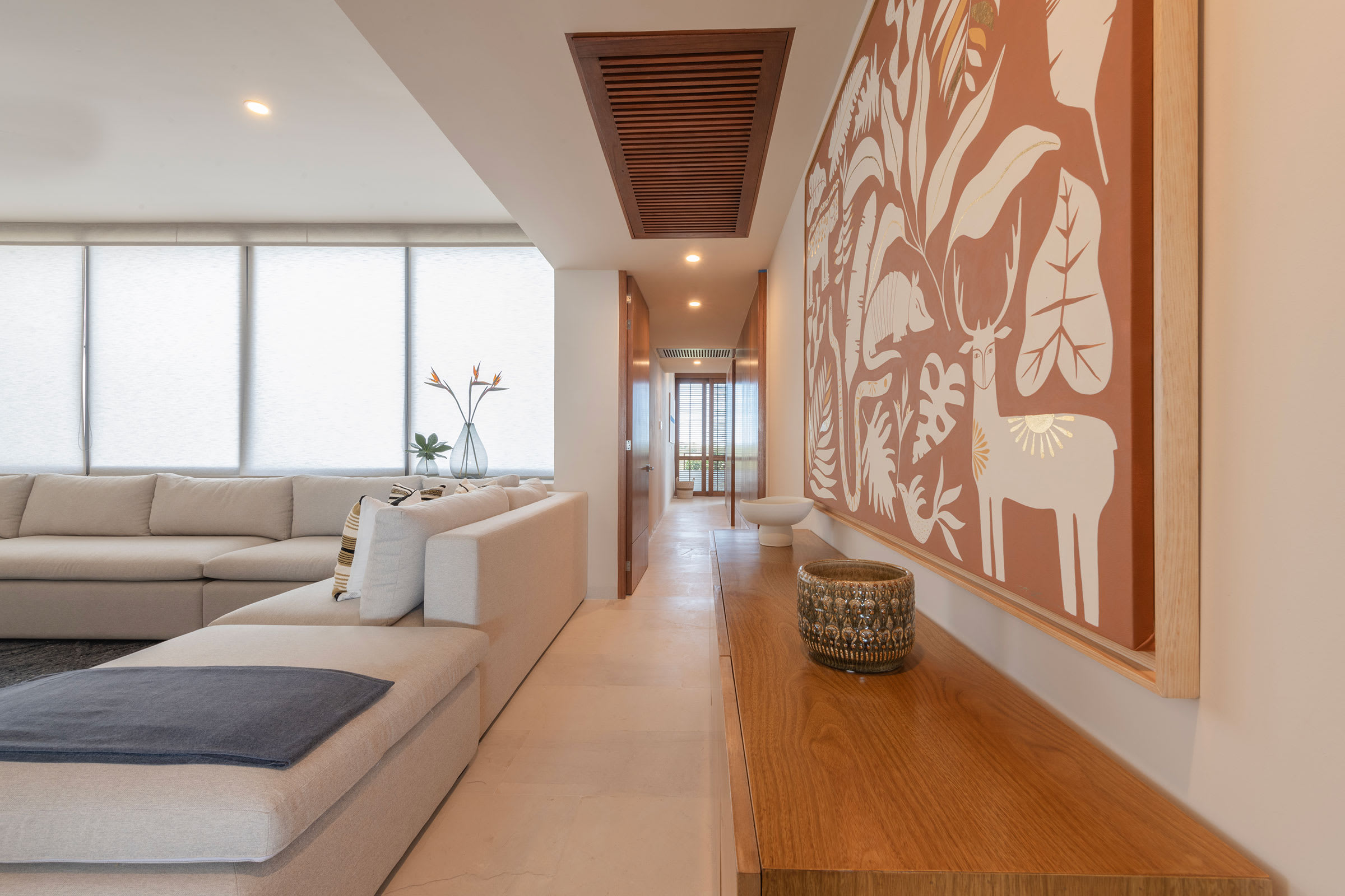Inside, the open-concept living spaces are bathed in natural light, with floor-to-ceiling windows that seamlessly blend the indoors with the lush outdoors. The gourmet kitchen boasts top-of-the-line appliances and a built-in bar, while the spa-inspired bathrooms offer a serene retreat. Each bedroom is a haven of comfort, with en-suite bathrooms and private terraces.